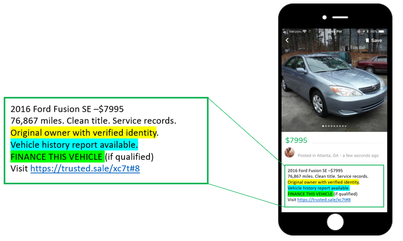 Trusted.Sale let's you safely interact and transact with anonymous buyers who contact you from ANY classified ad site, online vehicle marketplace, or mobile app.